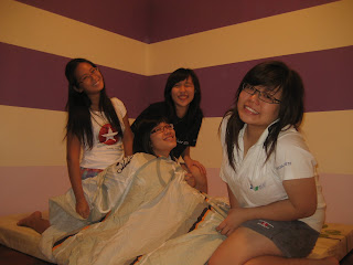 Poor Sharon K had to study, but it's okay when you've friends there with you. We accompanied her, had a quiet moment. Agnes did her maths, i read a story book. :)